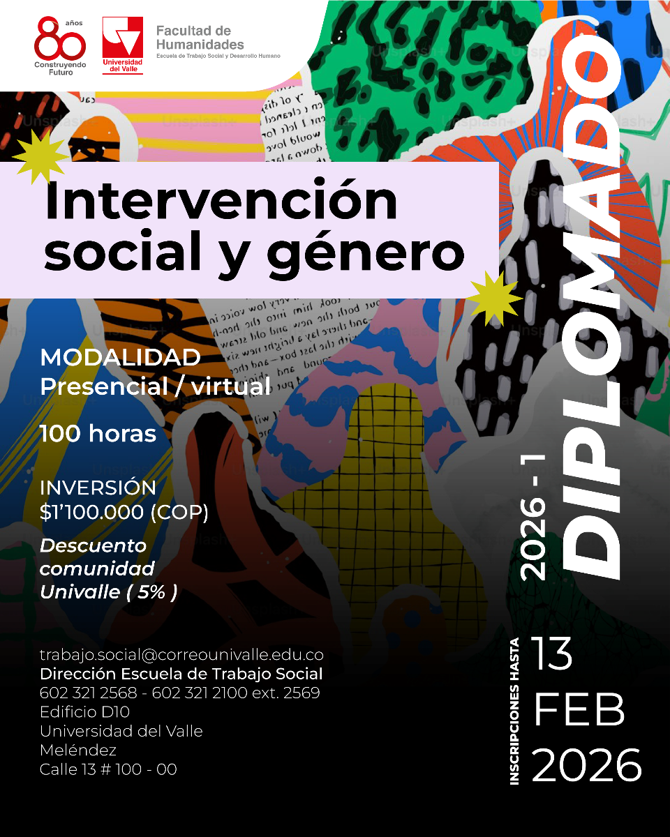 La Escuela de Trabajo Social y Desarrollo Humano de la Facultad de Humanidades te invita a participar en el Diplomado en Intervención Social y Género – 2026-1, un espacio de formación pensado para fortalecer capacidades en el abordaje crítico, ético y situado de las desigualdades de género en diversos contextos sociales.
