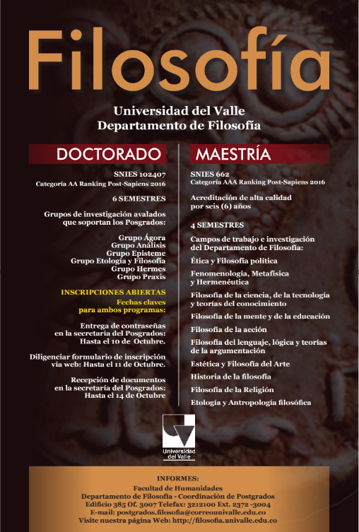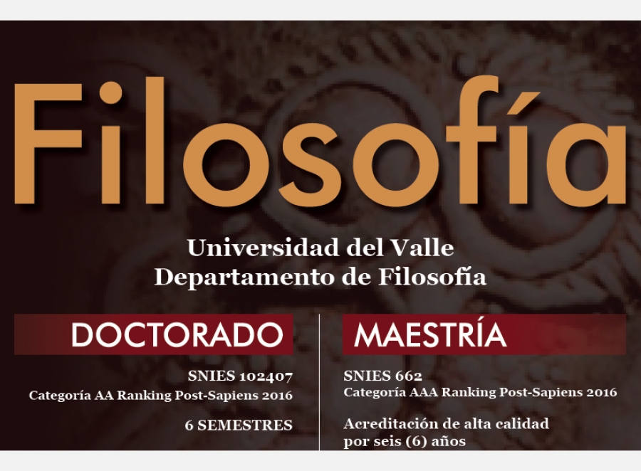 La Universidad del Valle tiene abiertas las inscripciones para los programas de Maestría y Doctorado en Filosofía, período académico febrero-junio de 2017. Ver información:Maestría Doctorado Ver afiche