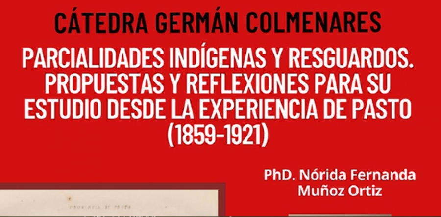 El Departamento de Historia de la Universidad del Valle les invita cordialmente a la Cátedra Germán Colmenares del mes de mayo, la cual será presentada por la Dra. Nórida Fernanda Muñoz Ortiz, titulada Parcialidades indígenas y resguardos. Propuestas y reflexiones para su estudio desde la experiencia de Pasto (1859-1921) a través de la plataforma Zoom.