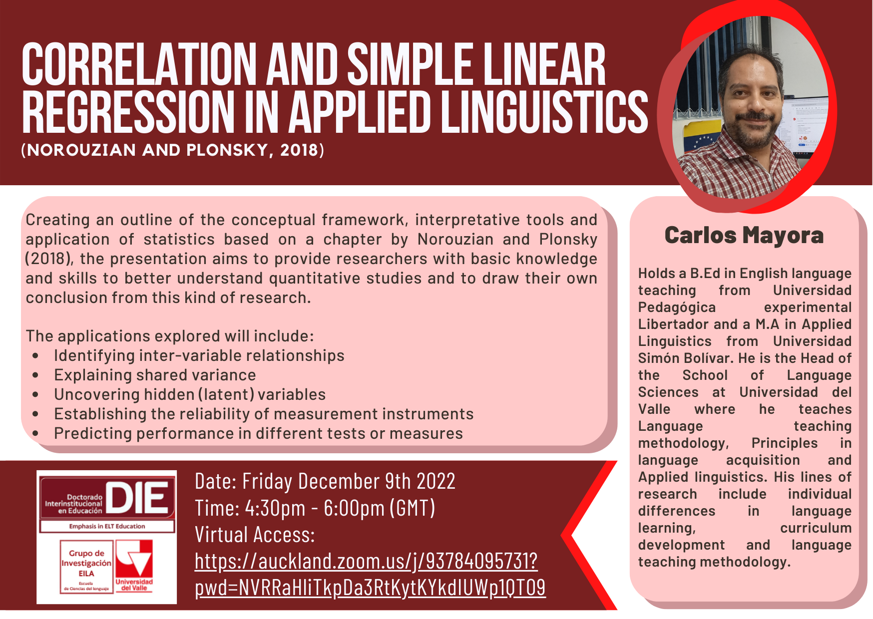 Sesión virtual Enlace: https://auckland.zoom.us/j/93784095731?pwd=NVRRaHliTkpDa3RtKytKYkdIUWp1QT09