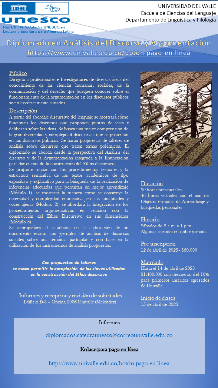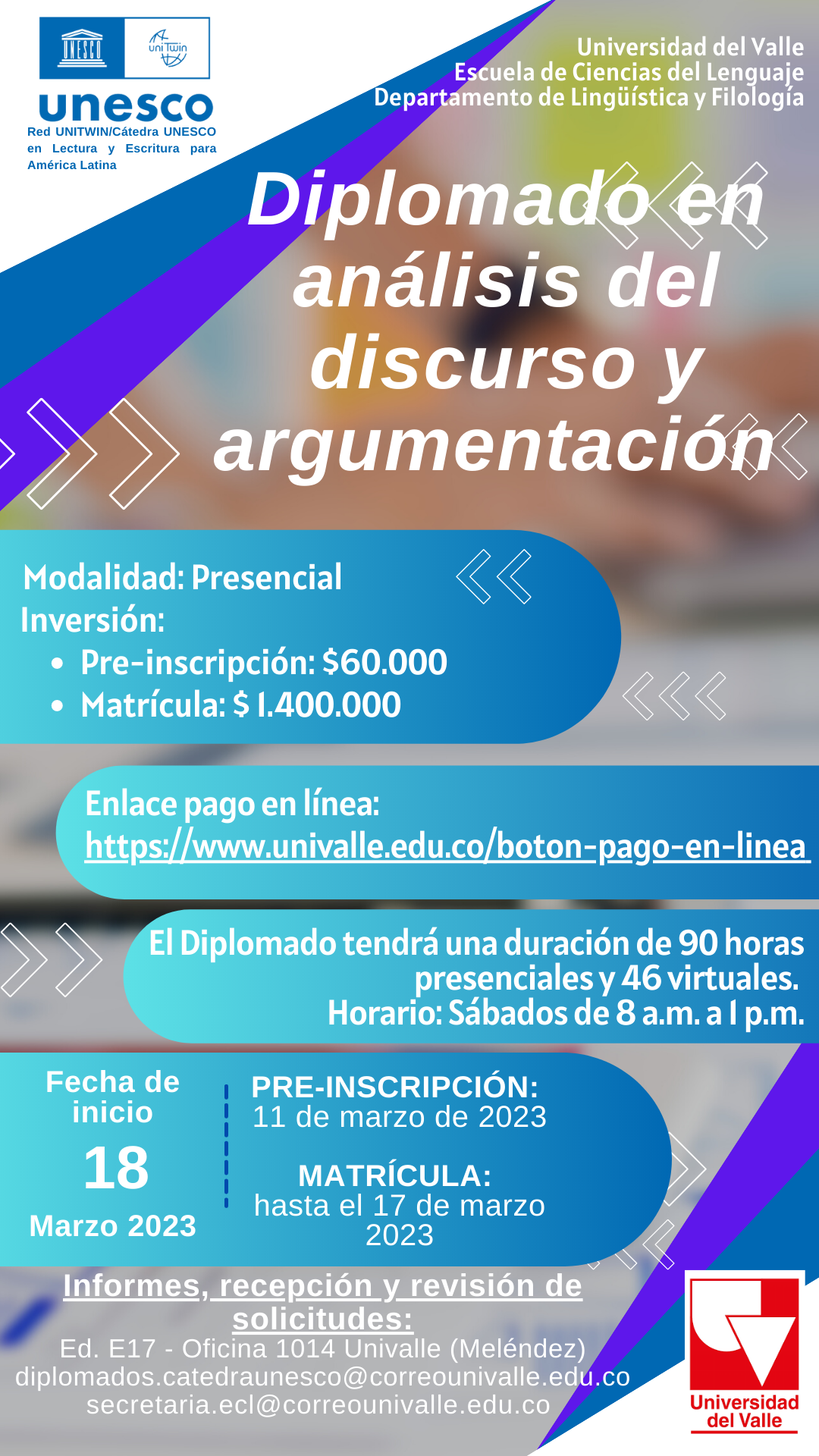 El Departamento de Lingüística y Filología y la Cátedra UNESCO en Lectura y Escritura para América Latina anuncian el llamado a inscripciones para el Diplomado en Análisis del Discurso y Argumentación. Las inscripciones estarán abiertas desde el 14 de abril y el diplomado inicia el 15 de abril.