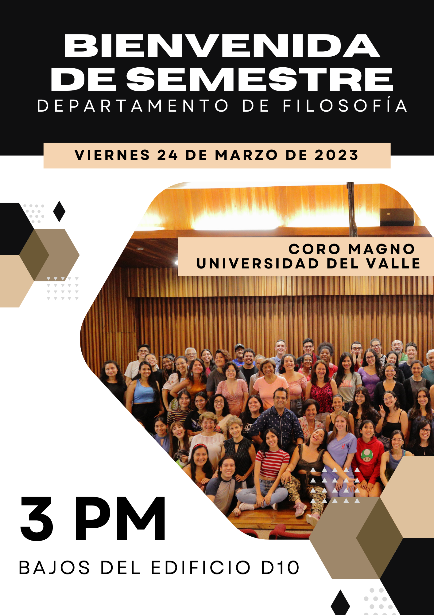 El Departamento de Filosofía de la Facultad de Humanidades de la Universidad del Valle invita a toda la comunidad universitaria al concierto de bienvenida de semestre el día viernes 24 de marzo a las 3:00 p.m. en los bajos del Edificio D10.