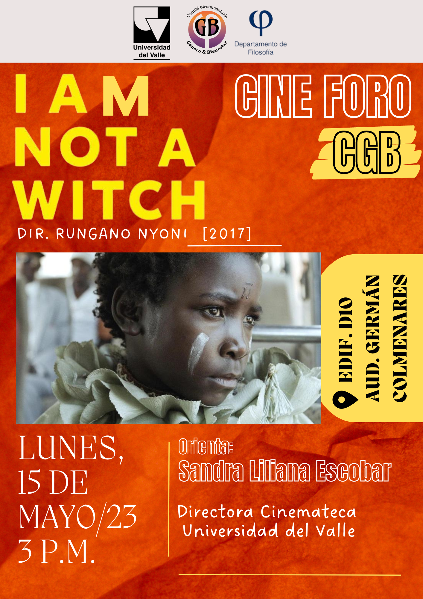El Comité Biestamentario de Asuntos de Género y Bienestar Estudiantil (CGB) del Departamento de Filosofía de la Facultad de Humanidades de la Universidad del Valle te invita a disfrutar de la próxima sesión de este ciclo del CineForo. Para esta ocasión proyectaremos I am not a witch (2017), ganadora de un Premio BAFTA en 2018, de la cineasta Rungano Nyoni. Contaremos con la orientación de Sandra Escobar, directora de la Cinemateca de la Universidad del Valle.