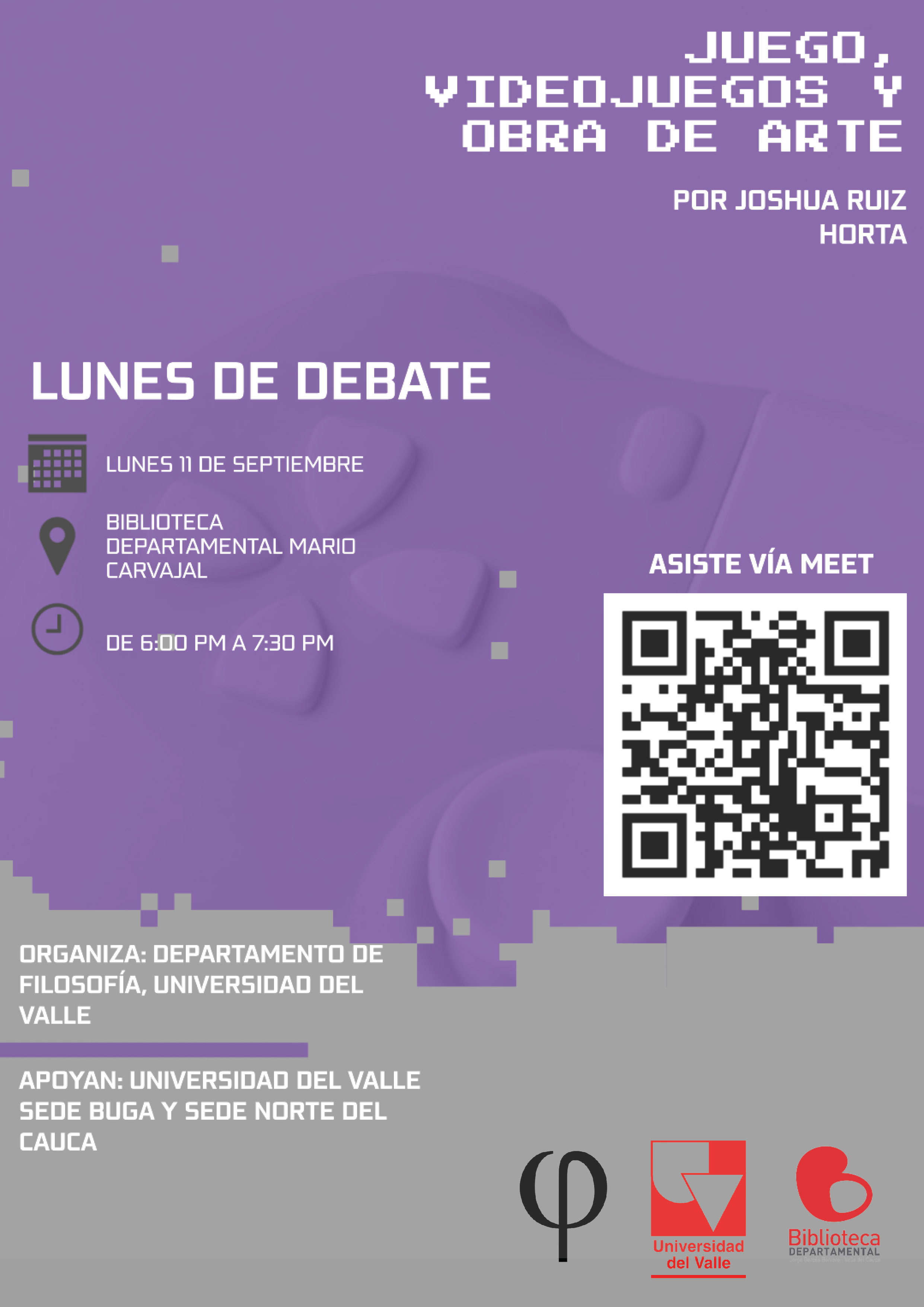 El Departamento de Filosofía de la facultad de Humanidades de la Universidad del Valle Invita a la comunidad en general a participar en el programa de extensión "Lunes de Debate: Filosofía en la Ciudad".