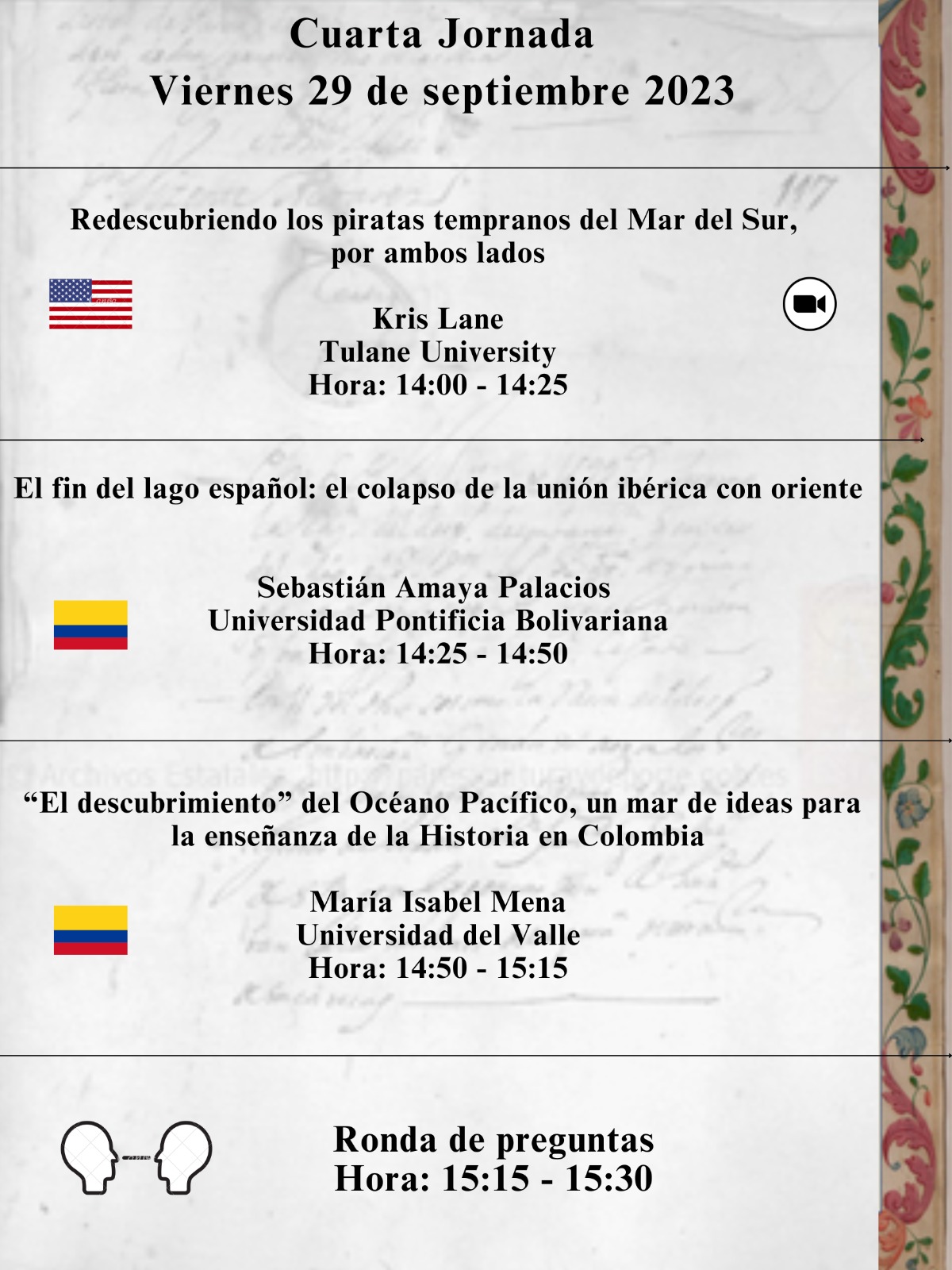 Tal evento bimodal, en el que participarán 21 académicos nacionales e internacionales tiene como objetivos, en primer lugar, reflexionar alrededor de los diferentes problemas, procesos, lógicas, patrones y dinámicas que emergieron y se consolidaron entre los espacios americanos que hacen parte de aquella macroregión geográfica desde el siglo XVI hasta nuestros días. Y en segundo lugar, se estudiarán los cambios y transformaciones acaecidas entre los pobladores nativos y los ecosistemas de las costas americanas del Pacífico como consecuencia del ingreso de otros grupos humanos y la explotación de sus recursos naturales.