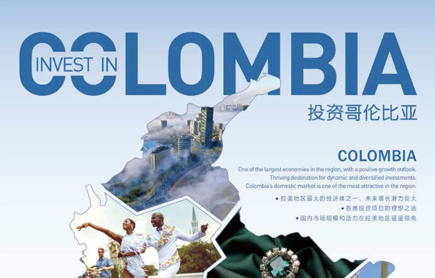 Invest in Colombia es una publicación seriada de la Embajada de Colombia en Beijing, su edición anterior fue en el año 2020, y para este número contó con la dirección editorial de Luis Jorge Roa, Primer Secretario de la Embajada. En la carátula, Cali aparece representada por una pareja bailando salsa y entre los artículos encontramos uno titulado “卡利——莎莎舞之都” (Cali, capital de la salsa).