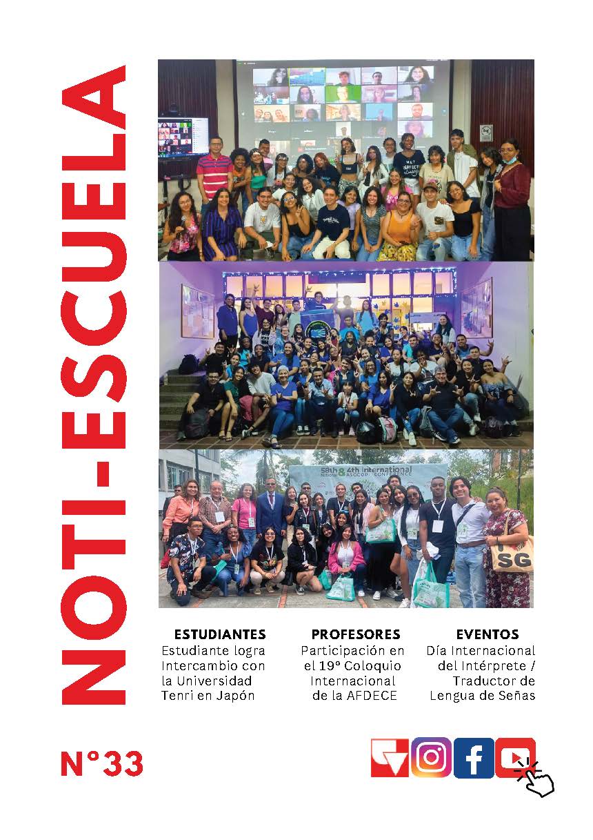 Presentamos el Boletín n° 33 de Noti-Escuela de la Escuela de Ciencias del Lenguaje de la Facultad de Humanidades correspondiente al periodo académico agosto-diciembre de 2023, y los invitamos a consultar la página web, en la pestaña Boletín Noti-Escuela.