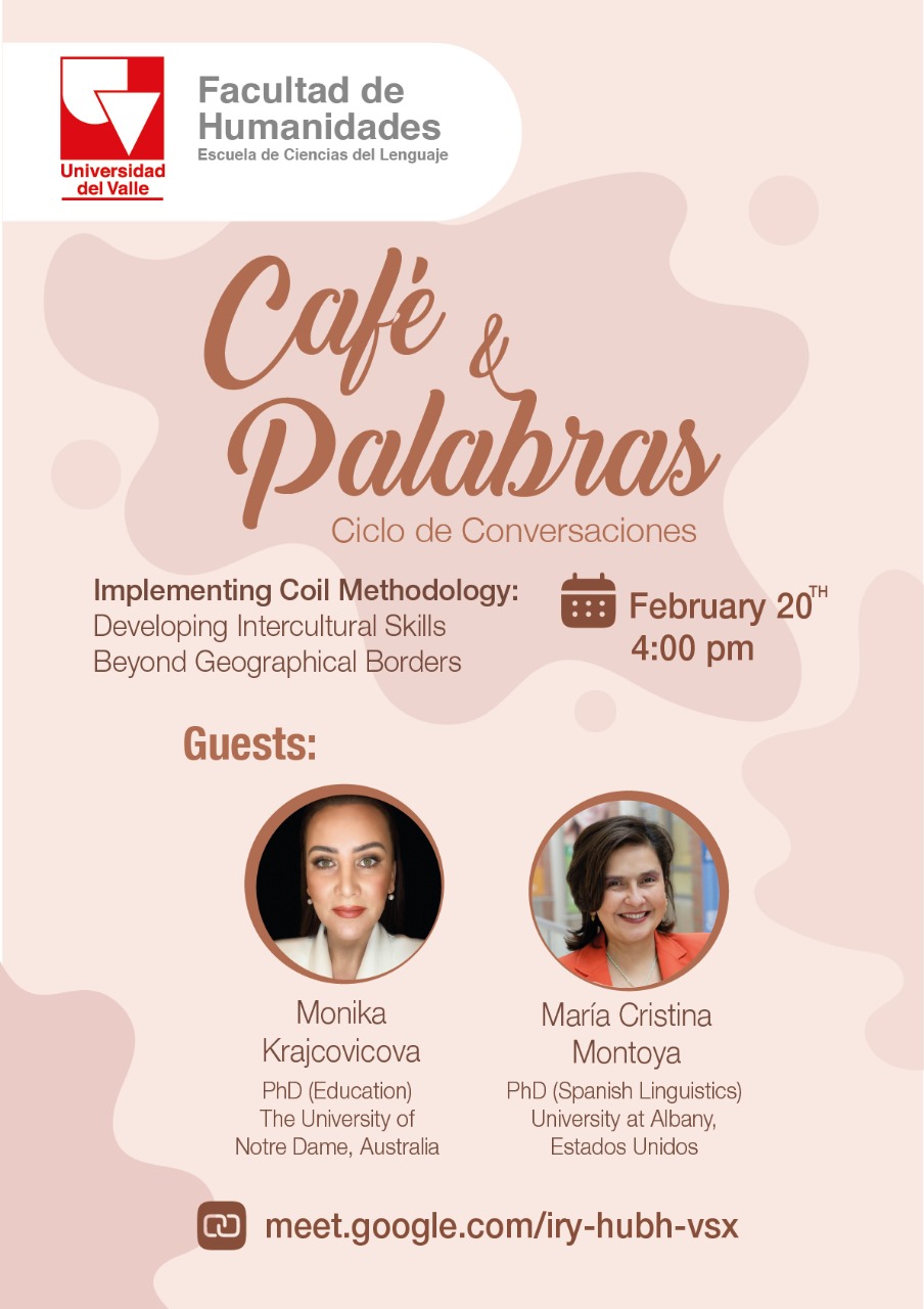 Desde el programa de Maestría en Estudios interlingüísticos e interculturales de la Facultad de Humanidades de la Universidad del Valle se extiende la invitación a participar en la primera sesión del conversatorio "Café y palabras" el siguiente martes 20 de febrero.