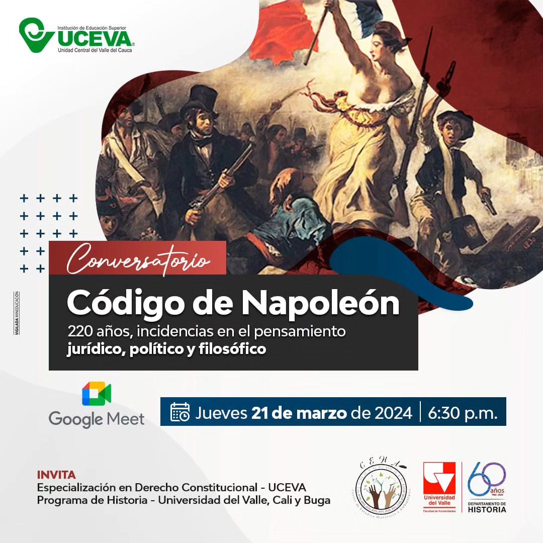 La Especialización en Derecho Constitucional de la UCEVA y el Programa en Historia de la Universidad del Valle sede Cali y sede Buga invitan al conversatorio "Código Napoleón: 220 años, incidencias en el pensamiento jurídico, político y filosófico". En este participará el profesor Carlos Alberto Murgueito, jefe del Departamento de Historia de la Facultad de nuestra Facultad de Humanidades.