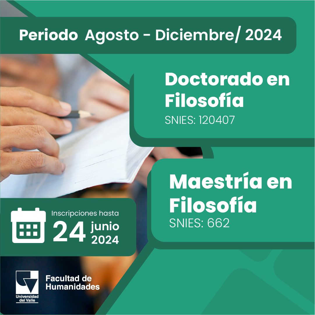 La Universidad del Valle está en proceso de admisiones de sus programas de posgrado (doctorados, maestrías y especialización) para el periodo agosto-diciembre de 2024. Para consultar los programas ofertados para Cali y sedes regionales, así como para conocer detalles del proceso de admisión, ingrese a https://admisiones.univalle.edu.co/new/index.php