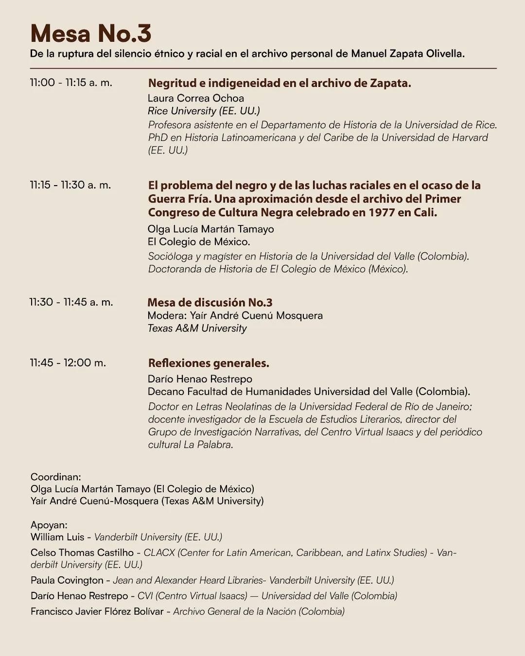 Este coloquio se organiza para discutir las investigaciones y hallazgos surgidos del archivo de Manuel Zapata Olivella, que llegó a la Universidad de Vanderbilt gracias a la amistad del profesor William Luis con Edelma Zapata Pérez y las gestiones de Paula Covington. Su digitalización y difusión, junto con el programa de becas del Centro de Estudios Latinoamericanos, Caribeños y Latinx, han permitido a investigadores acceder a valiosos documentos de Zapata Olivella, fomentando nuevas lecturas y hallazgos. Este encuentro busca compartir y analizar estos avances en honor a su legado.