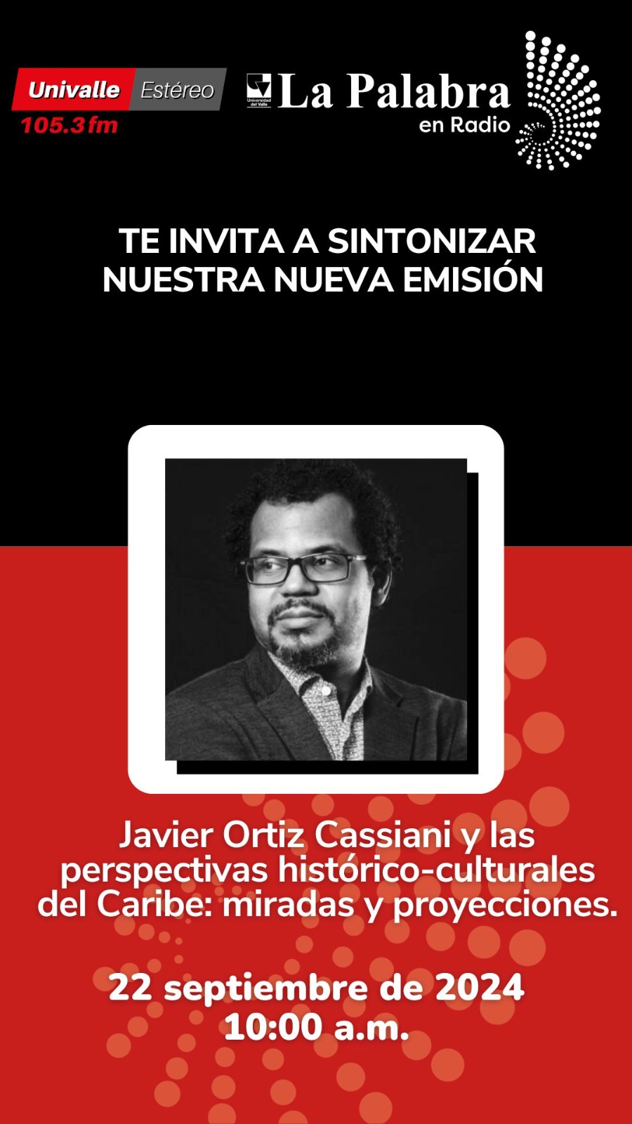 La Palabra en Radio invita a escuchar la emisión del próximo 22 de septiembre con Javier Ortiz Cassiani. El invitado es historiador de la Universidad de Cartagena, con estudios de postgrado en la Universidad de los Andes y El Colegio de México, y es autor de los libros El incómodo color de la memoria y Un diablo al que le llaman tren. Le preocupan los temas relacionados con la memoria, el discurso, la representación, la cultura popular y las paradojas de la historia. Ha sido asesor del Ministerio de Cultura, del Centro Nacional de la Memoria Histórica, de la Comisión de la Verdad, del Museo Histórico de Cartagena de Indias y del Espacio Cultural Claustro la Merced de la Universidad de Cartagena. Columnista de El Espectador y de la revista cultural El Malpensante.