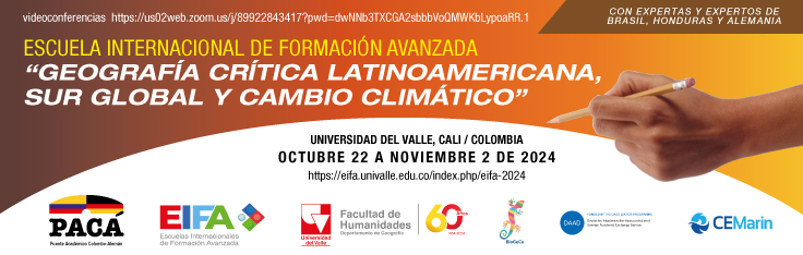 La Escuela Internacional Geografía Latinoamericana Crítica, Sur Global y Cambio Climático fomenta un ambiente de aprendizaje dinámico a través de conferencias magistrales, talleres prácticos, paneles de debate y presentaciones de investigación; puesto que analizará la complejidad de los conflictos territoriales en Colombia y América Latina en sus diferentes facetas: la medioambiental, la política y la social. Las y los expertos invitados abordarán cada uno de los diferentes aspectos, lo que permitirá a los participantes una comprensión holística de los problemas colombianos en un contexto global. Las distintas conferencias pretenden proponer soluciones innovadoras para una política sostenible en Colombia, que serán aplicadas y reflexionadas por los estudiantes en un animado discurso en los Talleres. EIFA se desarrolla al mismo tiempo que la COP16 en Cali, situación que resulta oportuna para abordar temas cruciales alineados con los Objetivos de Desarrollo Sostenible de la ONU: Acción por el clima, Paz y Comunidades sostenibles.