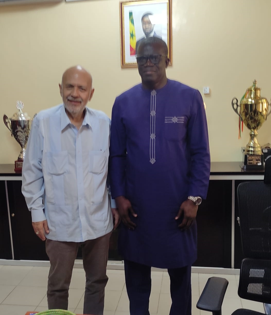 Alioune Badara Kandji, decano de Ciencias Humanas de la Universidad de Dakar(UCAD), y Darío Henao Restrepo, decano de la Facultad de Humanidades, ultiman detalles del convenio de cooperación que firmarán en próximos días y del interés mutuo por fortalecer la relación entre sus respectivas facultades. La fotografía fue tomada en la decanatura de Ciencias Humanas de la Universidad de Dakar.