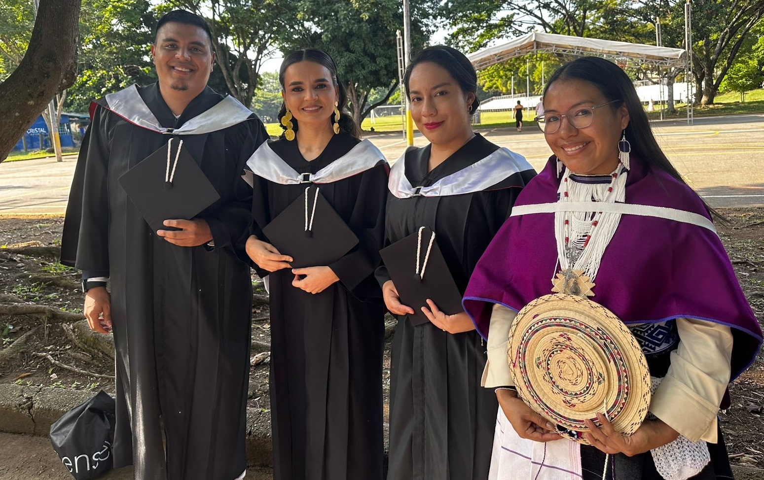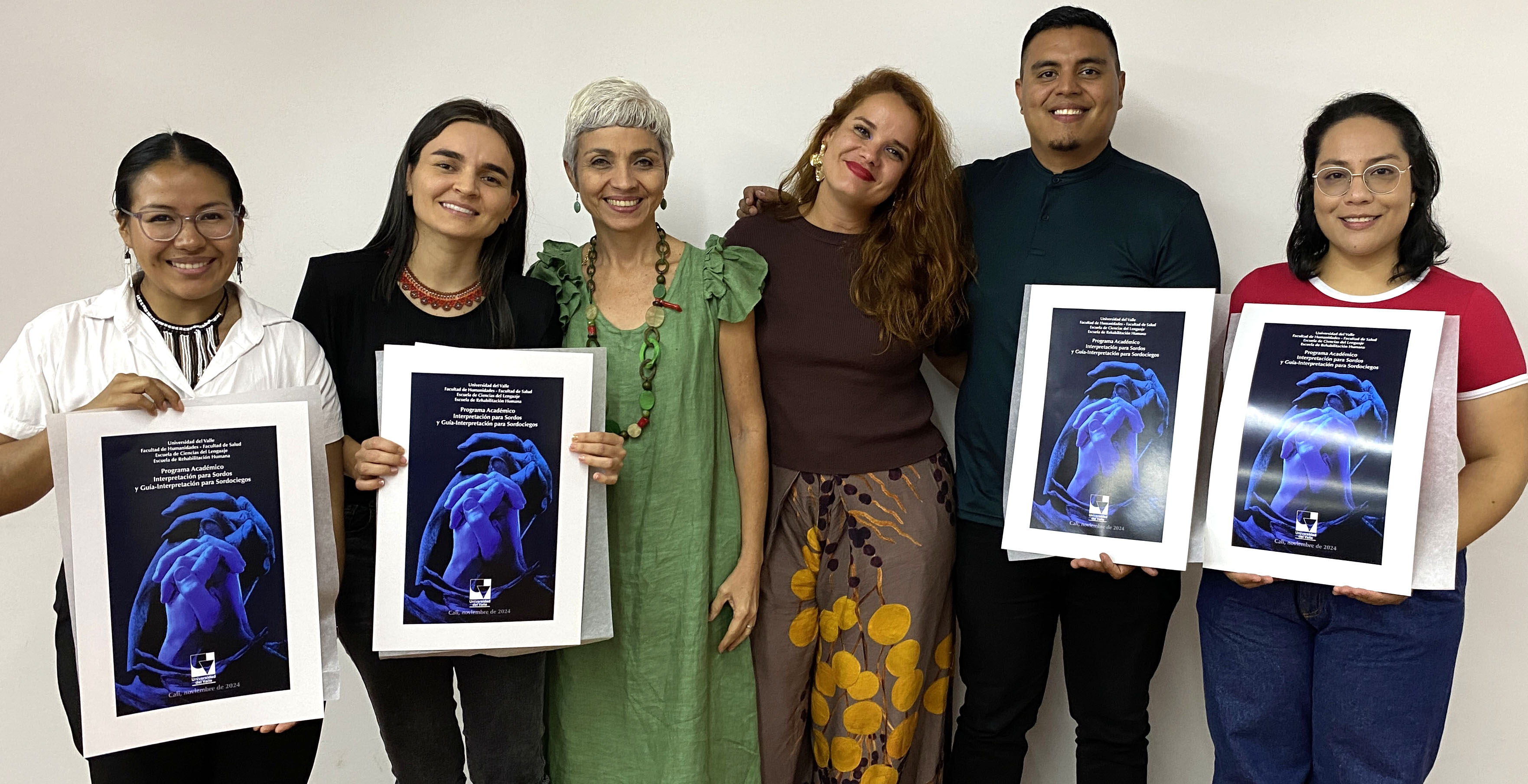 Felicitamos a los cuatro egresados que desde el 30 de noviembre incidirán positivamente en la sociedad permitiendo y potenciando la interacción entre sordos y oyentes, a la vez que representan un nuevo perfil profesional con todo el compromiso, dedicación y respaldo de la Universidad del Valle. Extensivo el reconocimiento al equipo humano que acompaña el proceso formativo de estos nuevos profesionales, un trabajo conjunto entre docentes sordos, sordociegos y oyentes y el apoyo de modelos lingüísticos de la lengua de señas colombiana.