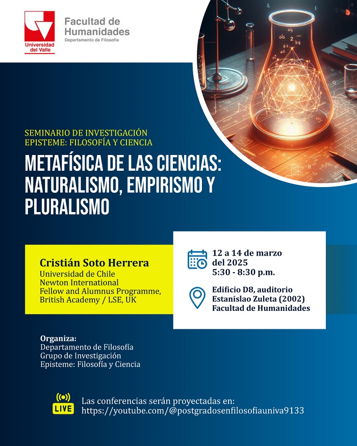 El Grupo de Investigación Episteme: Filosofía y Ciencia invitan al Seminario Metafísica de las ciencias: naturalismo, empirismo y pluralismo. El seminario estará a cargo del profesor Cristián Soto Herrera (Universidad de Chile).
