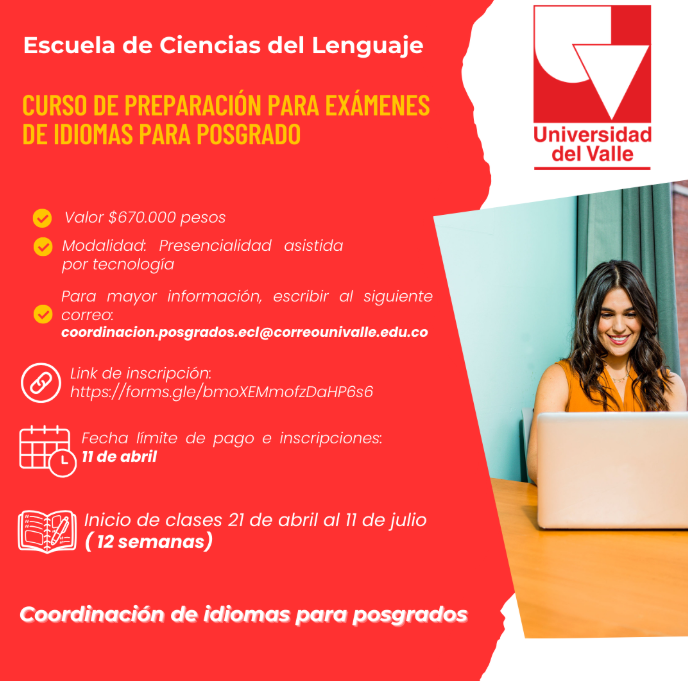 La Escuela de Ciencias del Lenguaje de la Facultad de Humanidades anuncia que para el presente periodo académico ofrecerá nuevamente el curso de preparación para la presentación del examen de proficiencia (en inglés) para los posgrados de la Universidad.