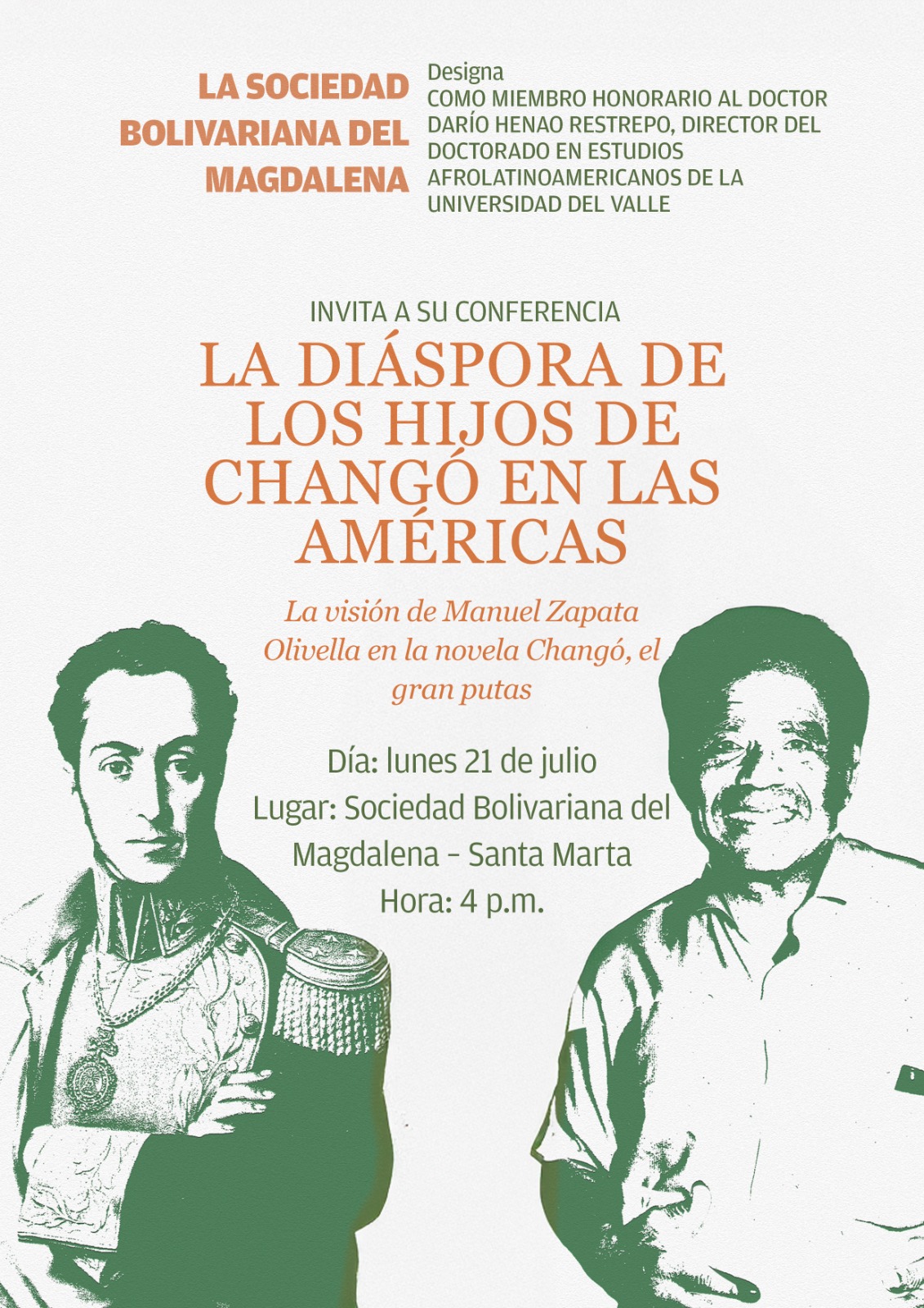 El profesor Darío Henao Restrepo de la Escuela de Estudios Literarios de la Facultad de Humanidades fue aceptado como miembro honorario de la Sociedad Bolivariana del Magdalena, el pasado 21 de julio de 2025. Para tal designación, el profesor Henao se hizo presente en la ciudad de Santa Marta y presentó su libro “La epopeya de los hijos de Changó en las Américas”.