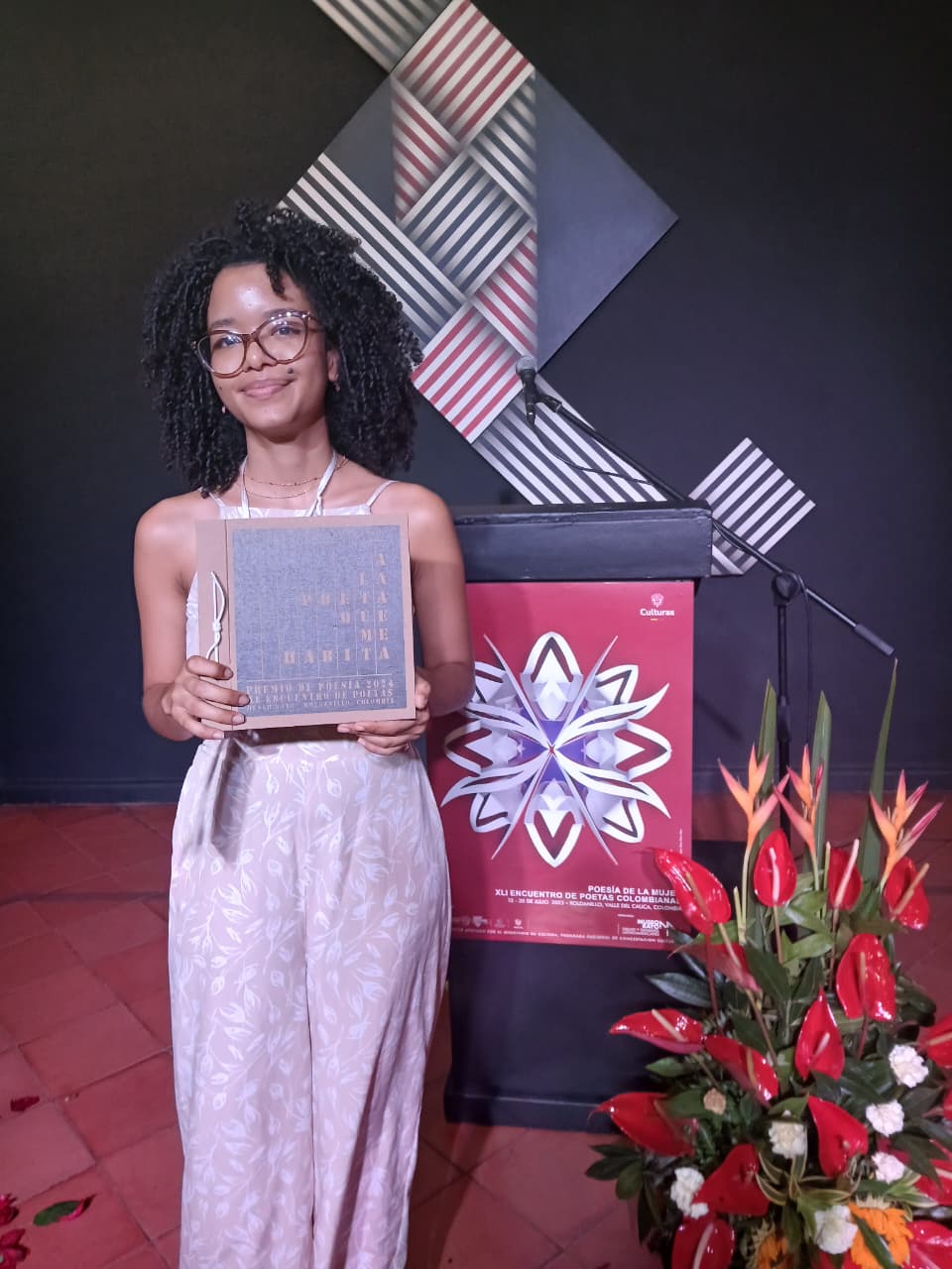 Recuerda Ángela que fue durante una jornada de su práctica profesional de la Licenciatura en Literatura, precisamente en Roldanillo, donde se enteró de la convocatoria al concurso y, dentro de los apuros propios de lo inesperado, logró organizar su carpeta de poesías que, un año después, serían reconocidas con el máximo honor. Su participación en el evento fue doble: aspirante del concurso y participante en el Encuentro de Poetas Colombianas. Nuestra poeta destaca el espíritu amplio y solidario del encuentro: participan mujeres de todas las edades, poetas consagradas o simplemente aficionadas.
