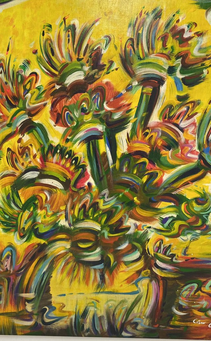 Como artista, de César Correa se destaca su búsqueda de una teoría del color. Este trasegar se inicia a sus 28 años. Después de incursionar por varios campos del arte y del conocimiento, en la procura de reconocer un espacio de expresión y creación que le dieran sentido y afirmación a su vida, César se decanta por los pinceles y los lienzos. Desde el 2021, su oficio artístico se ha materializado en veinticinco series de pinturas. Algunos títulos: Colombia, Abrazos, Precolombinos, Trópico, Pacífico, Cielos, Emociones, Abstracciones, Jardines del alma, entre otros. César también ha incursionado en la escultura. Sobre su obra, se lee en la edición n. 17. ° de la revista que aquí presentamos, “(…) el protagonista es el color, la diversidad de tonalidades se conjugan con lo claro e indistinto de sus pinceladas gestuales, evocando estados emocionales que trata de transmitir; cada cuadro es la expresión de lo que lleva adentro. No se afirma en el mirar hacia fuera para representar plásticamente el mundo; el dibujo no determina su obra, la línea no orienta visualmente la definición del espacio plástico ni de los elementos compositivos; dibuja mientras pinta, dibuja con la mancha lo que la naturaleza le brinda”.