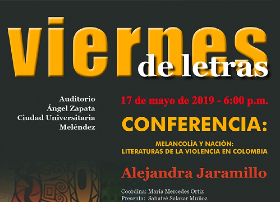 La Escuela de Estudios Literarios, con el apoyo del Área Cultural División de Bibliotecas y de la Rectoría, invita a su ciclo de conferencias y conversatorios Viernes de Letras con la escritora Alejandra Jaramillo, el próximo viernes 17 de mayo, a las 6:00 p.m., en el Auditorio Ángel Zapata, Biblioteca Mario Carvajal. Universidad del Valle sede Meléndez.