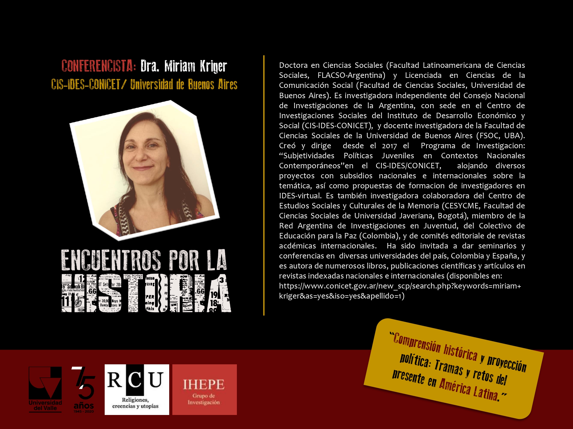 Dra. Miriam Kriger (CIS-IDES-CONICET/Universidad de Buenos Aires).