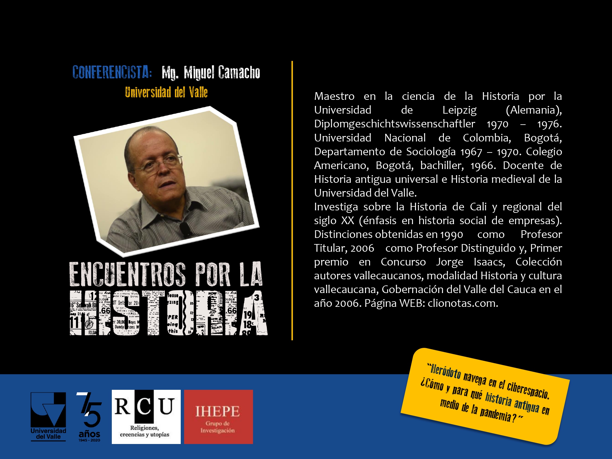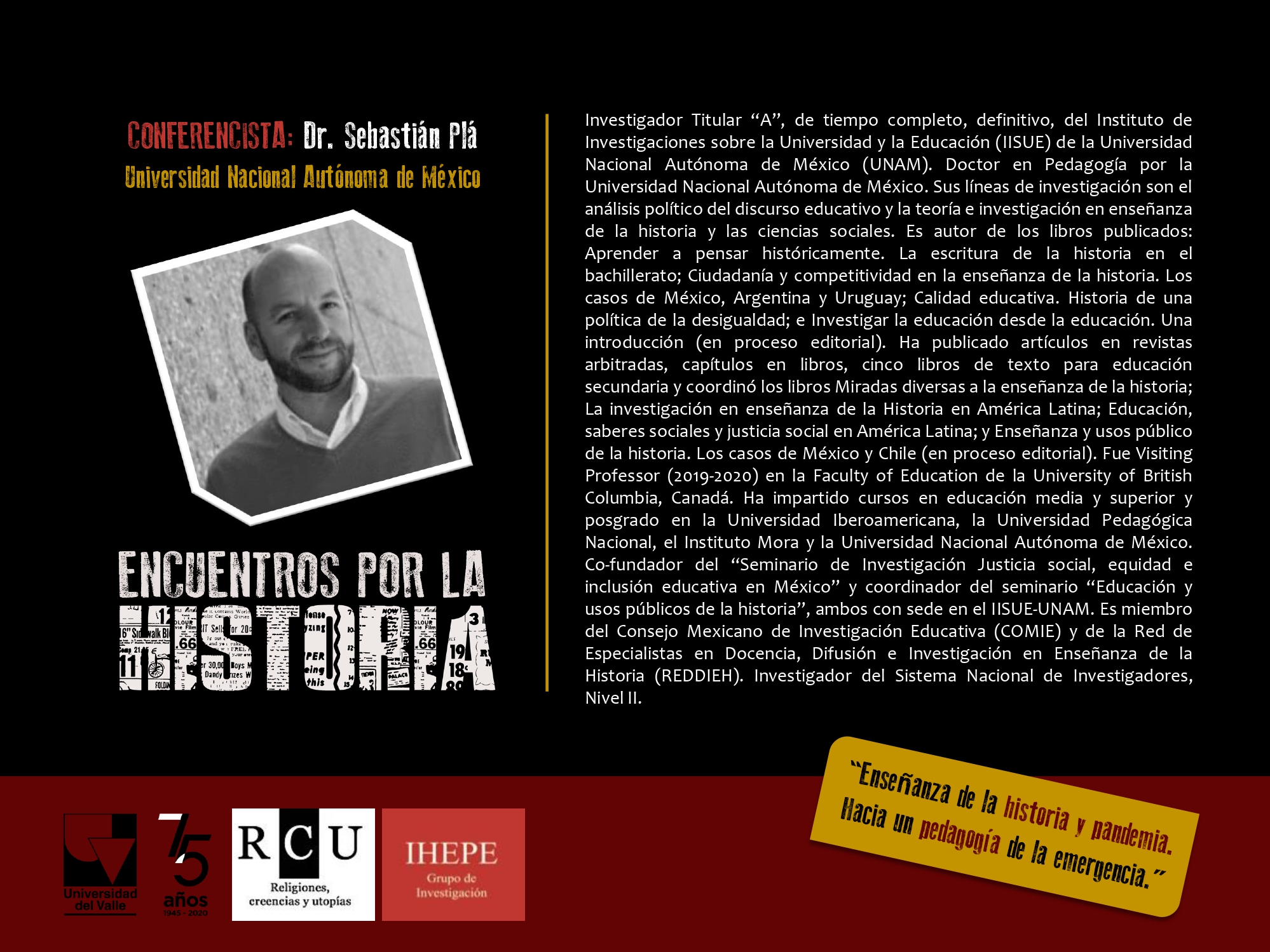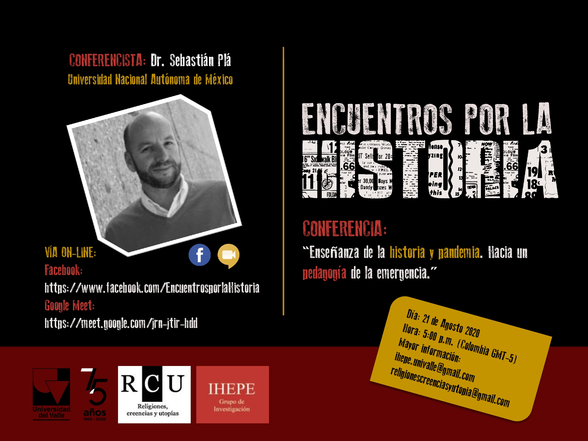 ‘Encuentros por la Historia’ es una propuesta liderada por el Grupo de Investigación Religiones, Creencias y Utopías (RCU) y el Grupo de Investigaciones Históricas en Economía, Política y Educación (IHEPE), en la que a partir de la divulgación académica y la reunión con especialistas y profesores investigadores de diversos países, se socializan proyectos, reflexiones e investigaciones en la línea de la Historia o de la Enseñanza de la Historia.
