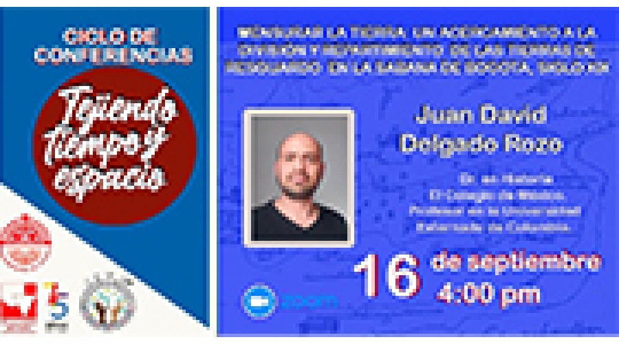En esta ocasión se contará con la compañía del Dr. Juan David Delgado Rozo, geógrafo y maestro en Historia de la Universidad Nacional de Colombia (sede Bogotá) y doctor en Historia en El Colegio de México, actualmente profesor en la Universidad Externado de Colombia.