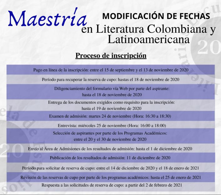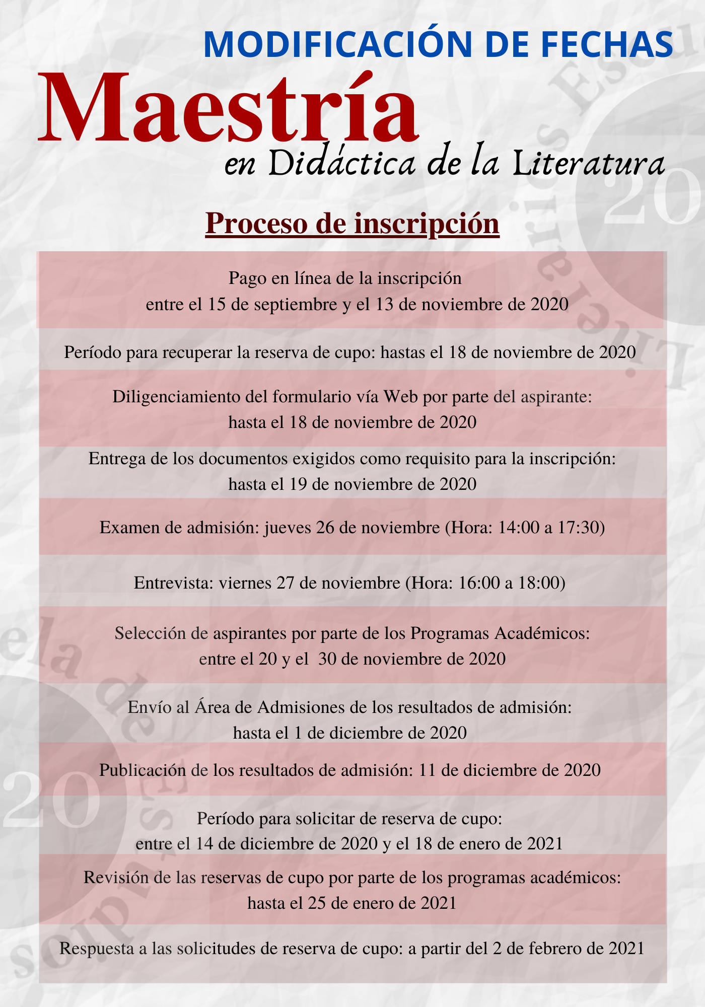 La Escuela de Estudios Literarios comparte los nuevos cronogramas de inscripción a sus dos maestrías: