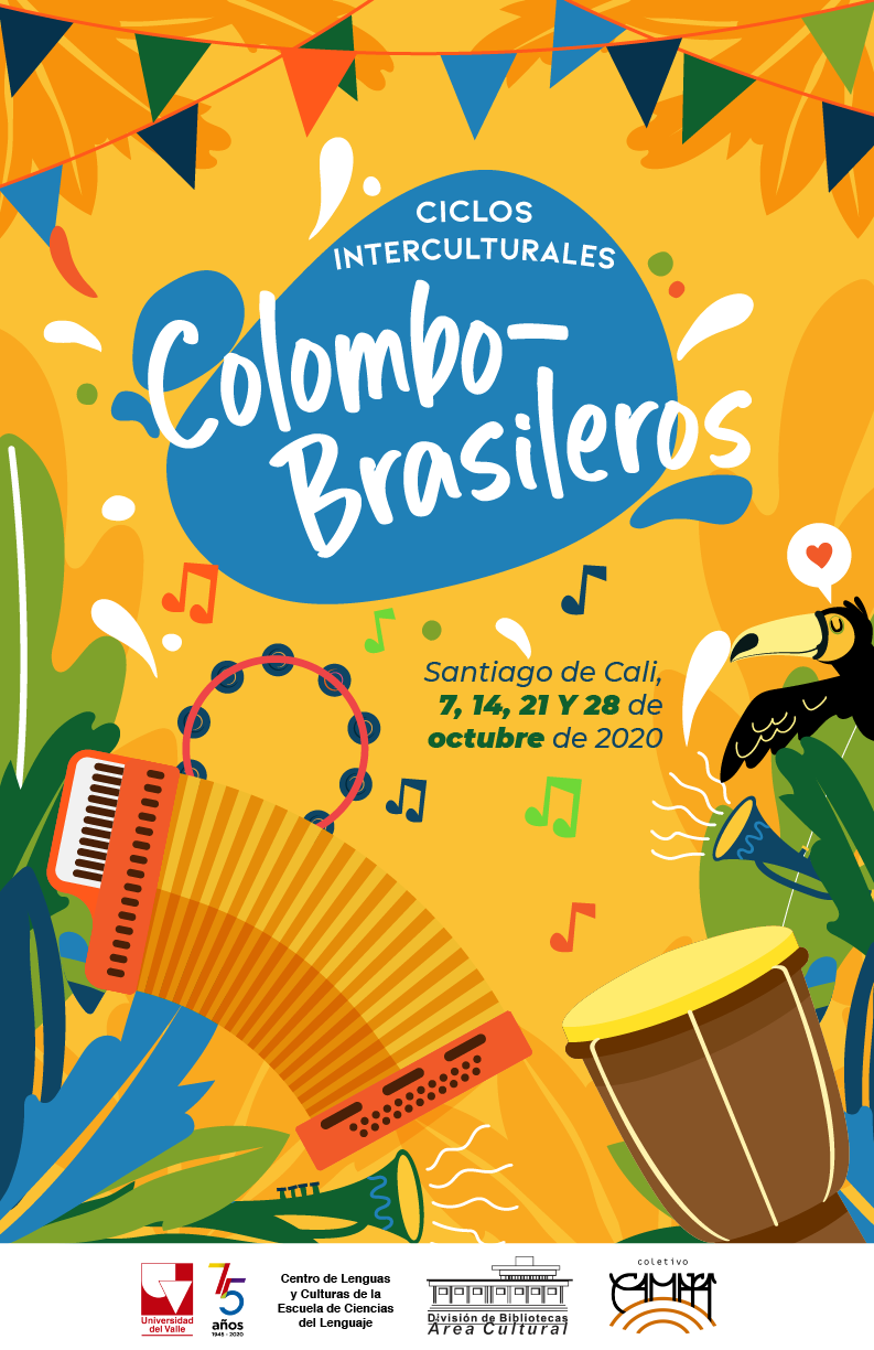 El Área Cultural del Centro de Lenguas y Culturas de la Escuela de Ciencias del Lenguaje, con el apoyo del Departamento de Relaciones Internacionales, la RedCaal y la el Área Cultural de la División de Bibliotecas Mario Carvajal de la Universidad del Valle y el Colectivo Camará, se complacen en invitar a la comunidad universitaria y a la ciudadanía caleña a los primeros Ciclos Interculturales Colombo Brasileros, Universidad del Valle 2020, que se llevarán a cabo de los miércoles 7, 14, 21 y 28 de octubre próximos, de manera virtual.