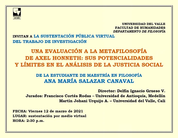 SUSTENTACIÓN DEL TRABAJO DE INVESTIGACIÓNDE LA ESTUDIANTE DE MAESTRÍA EN FILOSOFÍA