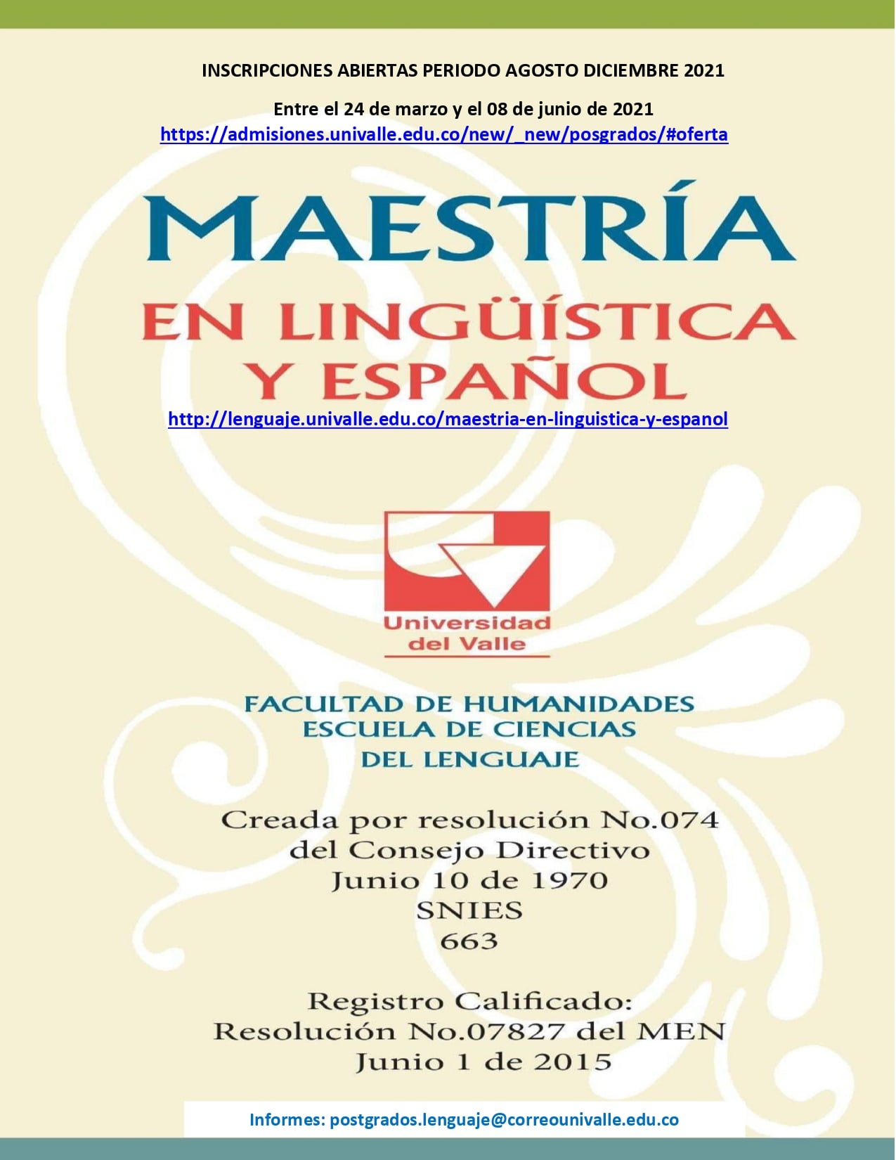 Informamos que están abiertas las inscripciones al programa de posgrado de la Maestría en Lingüística y Español. Puede consultar el calendario de inscripciones y admisiones aquí